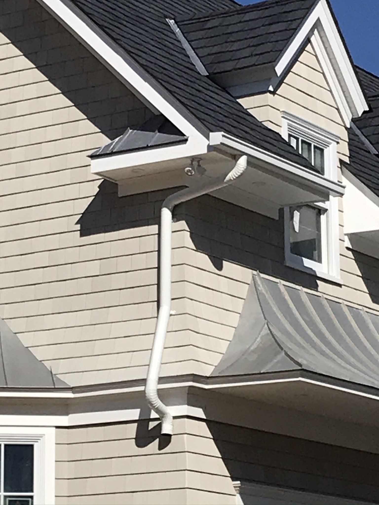 - Heavy-duty, larger downspouts for increased water flow